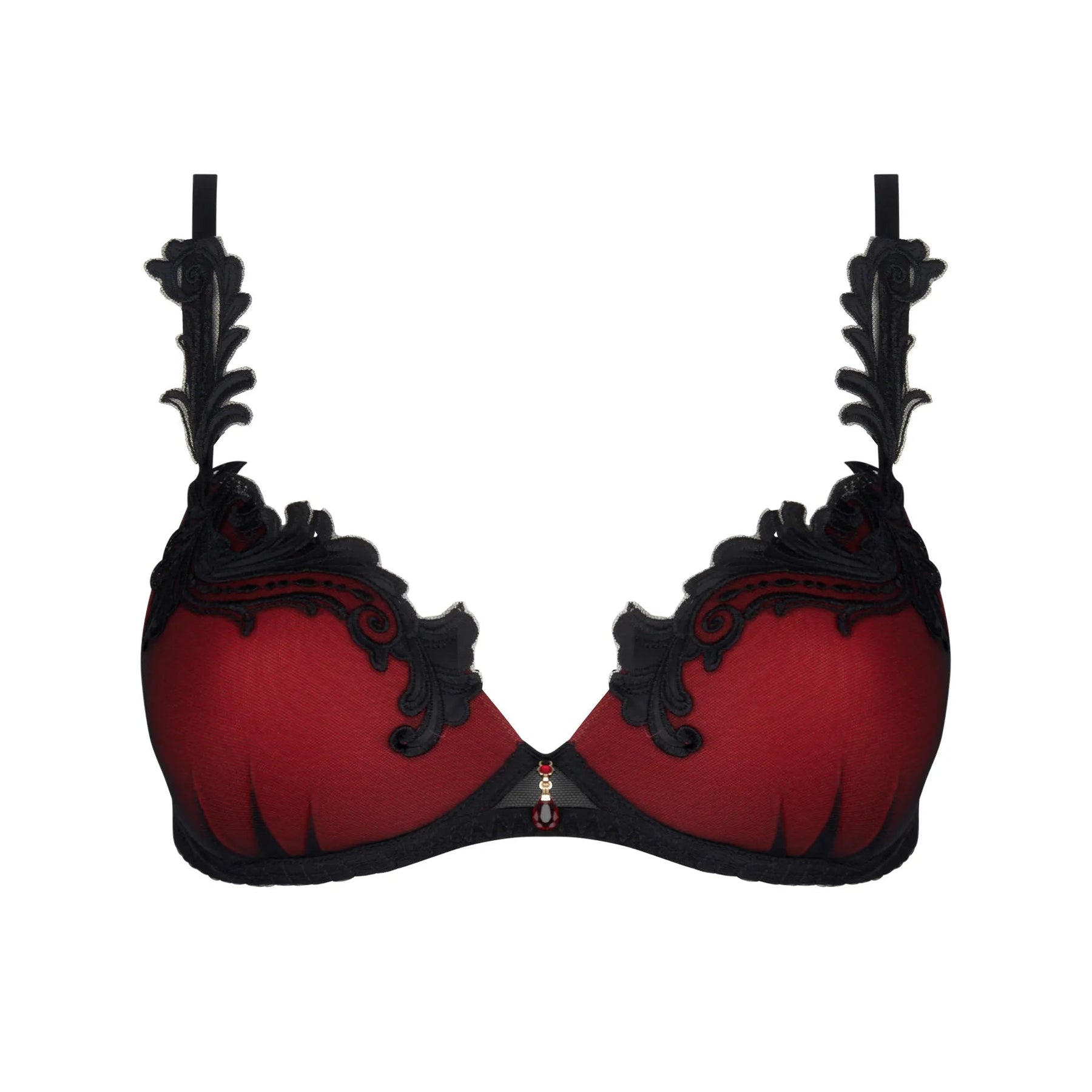 - L'entre-gorge est orné d'un bijou strass rouge